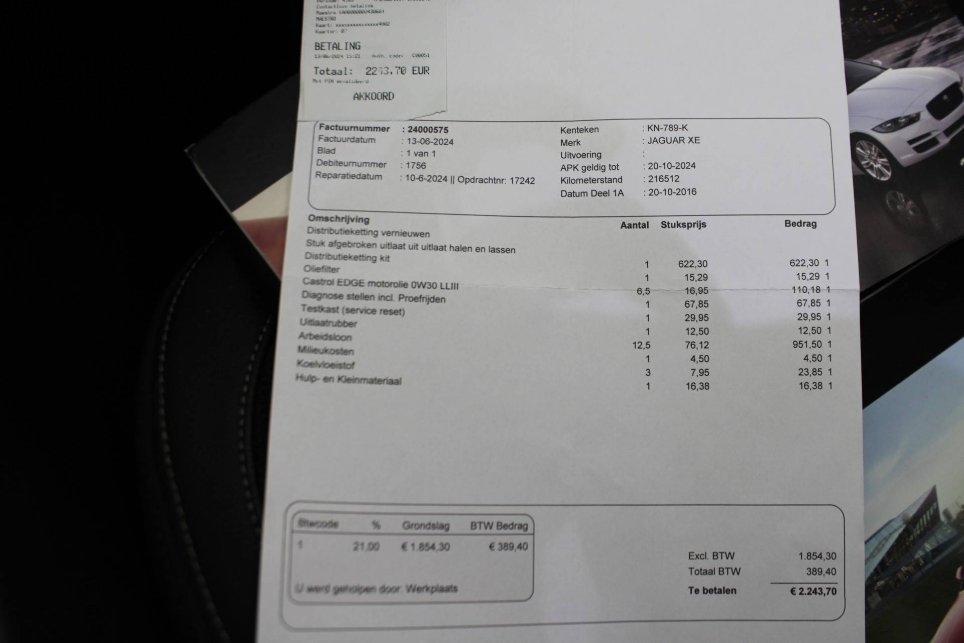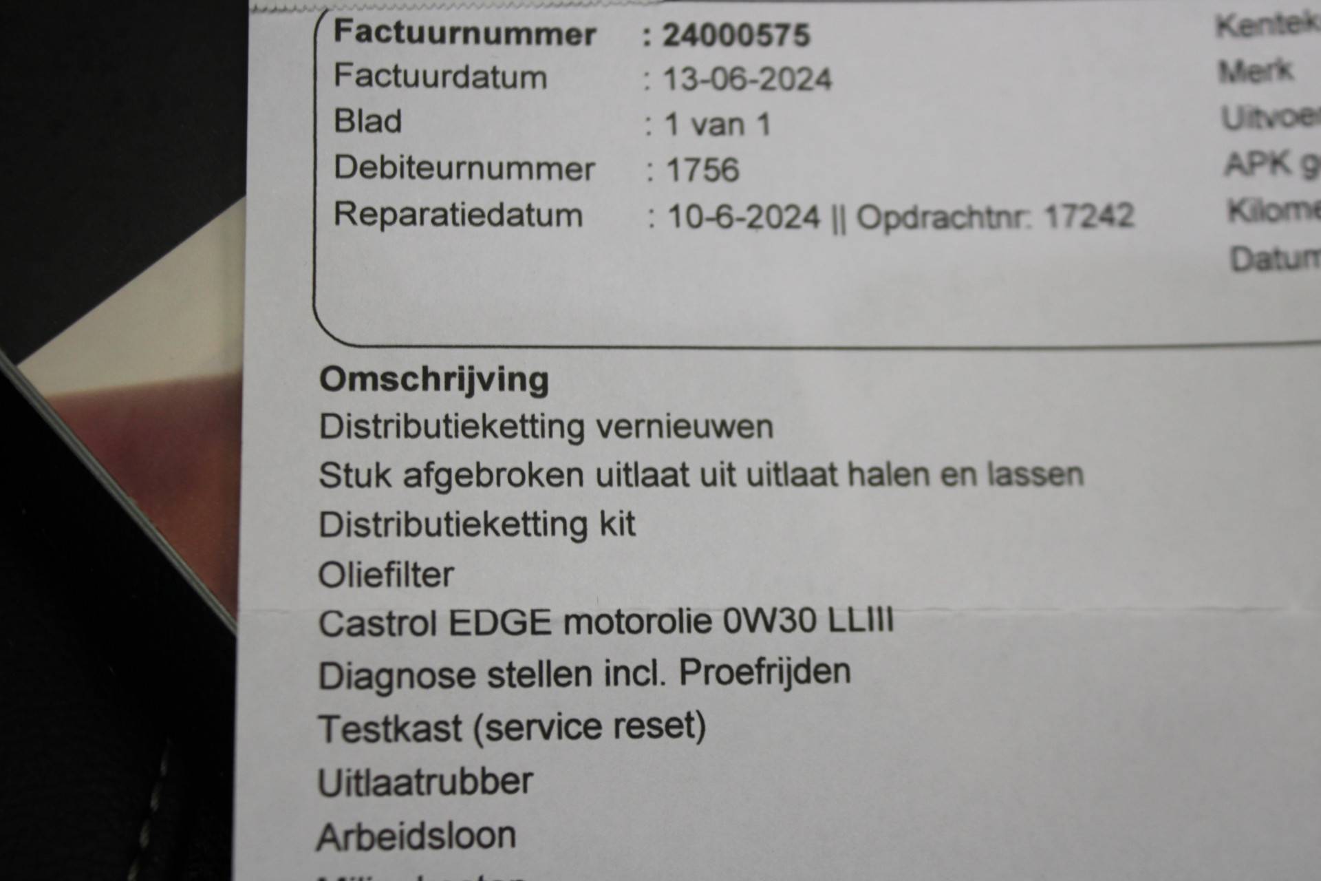 Distributieketting vervangen bij 216.xxx km zie factuur.KL Auto’s – Hét adres voor betrouwbare occasions in Oosterhout