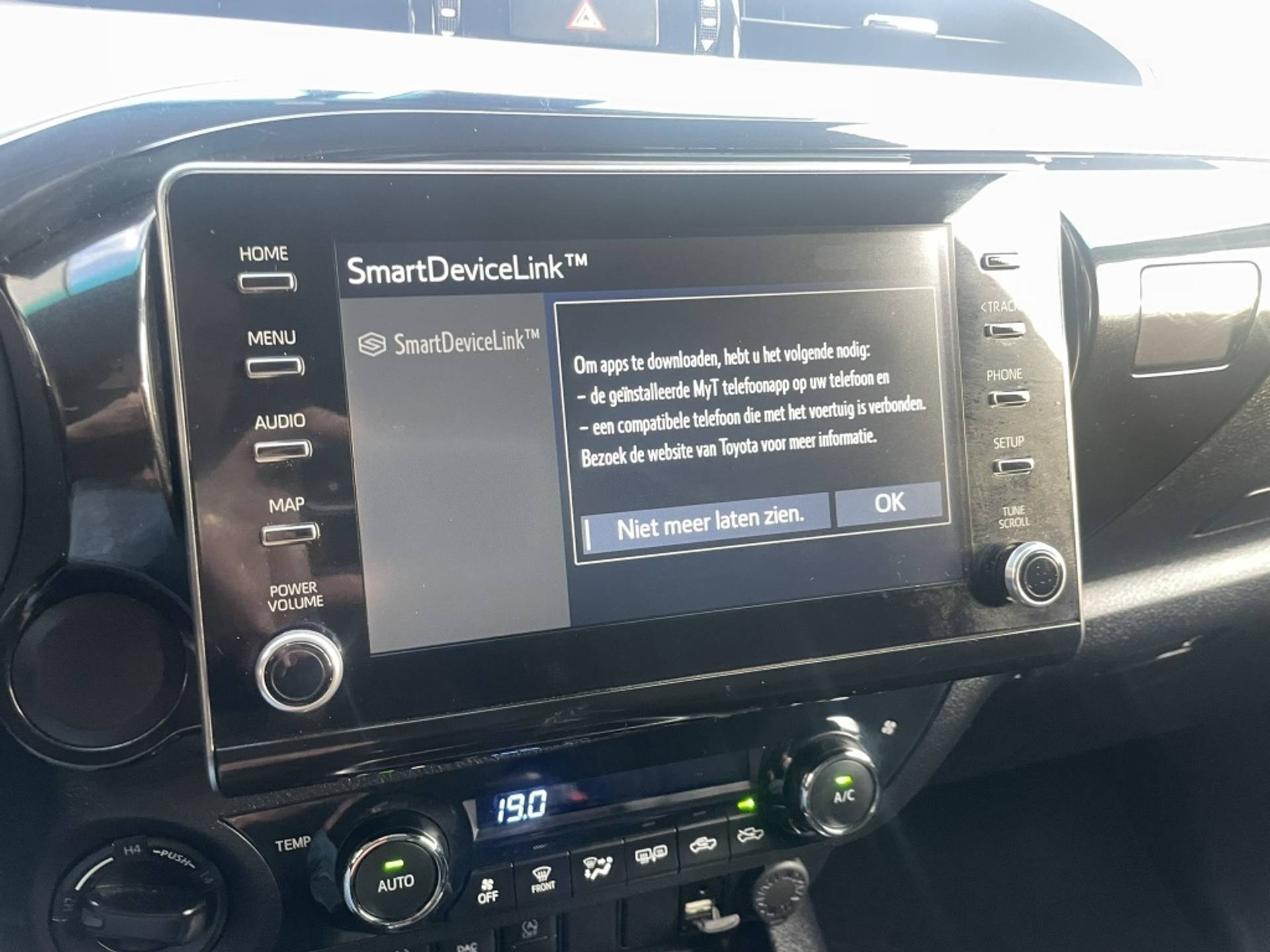 Deze Toyota HiLux 2.4 D-4D 150PK 4WD is voorzien van airco (ECC), adaptive cruise control, carplay, achteruitrijcamera, trekhaak (3500 kg).