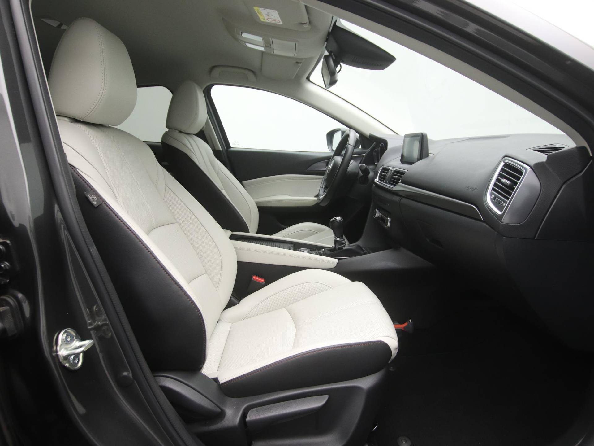 De Mazda3 staat bekend om de zeer fijne rijprestaties. De 2 liter benzinemotor zorgt in samenwerking met de soepele handgeschakelde transmissie voor een optimaal rijgedrag. De uitvoering betreft een Skylease GT in het Machine Gray, een prachtige grijze kleur van Mazda. Juist die grijze kleur in combinatie met het 'pure white' lederen interieur geeft de auto een stoere en sportieve uitstraling. Kortom, een rijk uitgeruste auto die niks ontbreekt aan luxe en comfort. Deze auto is altijd volledig dealer onderhouden (aantoonbaar).